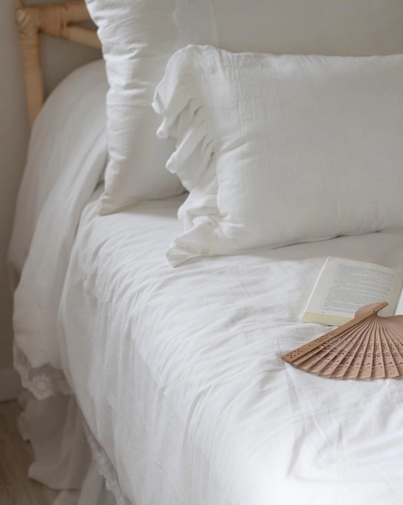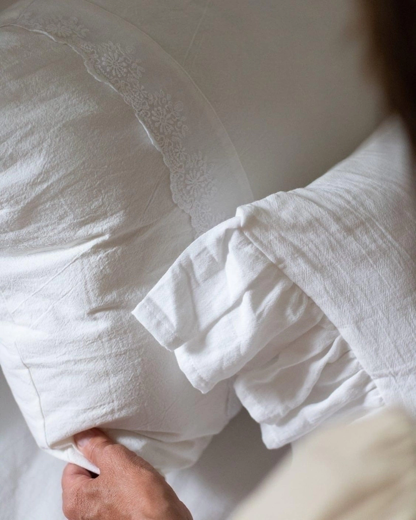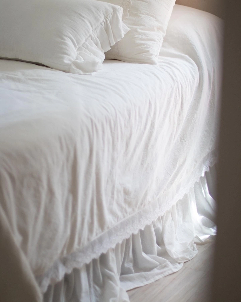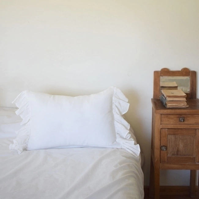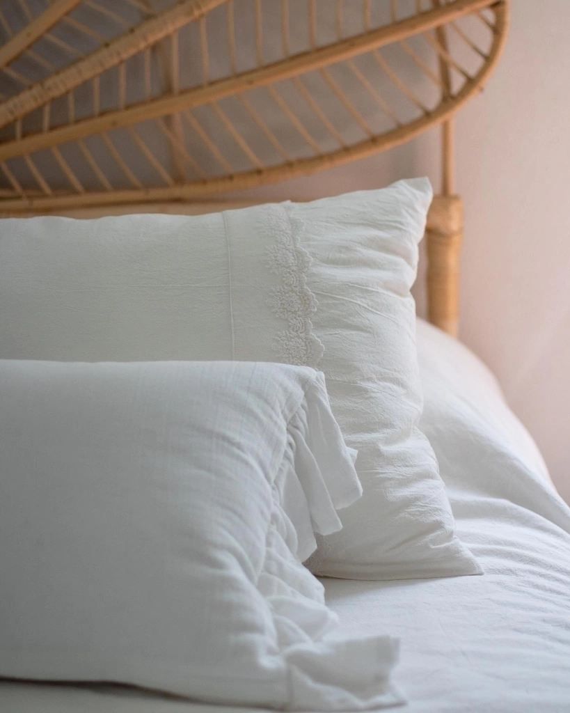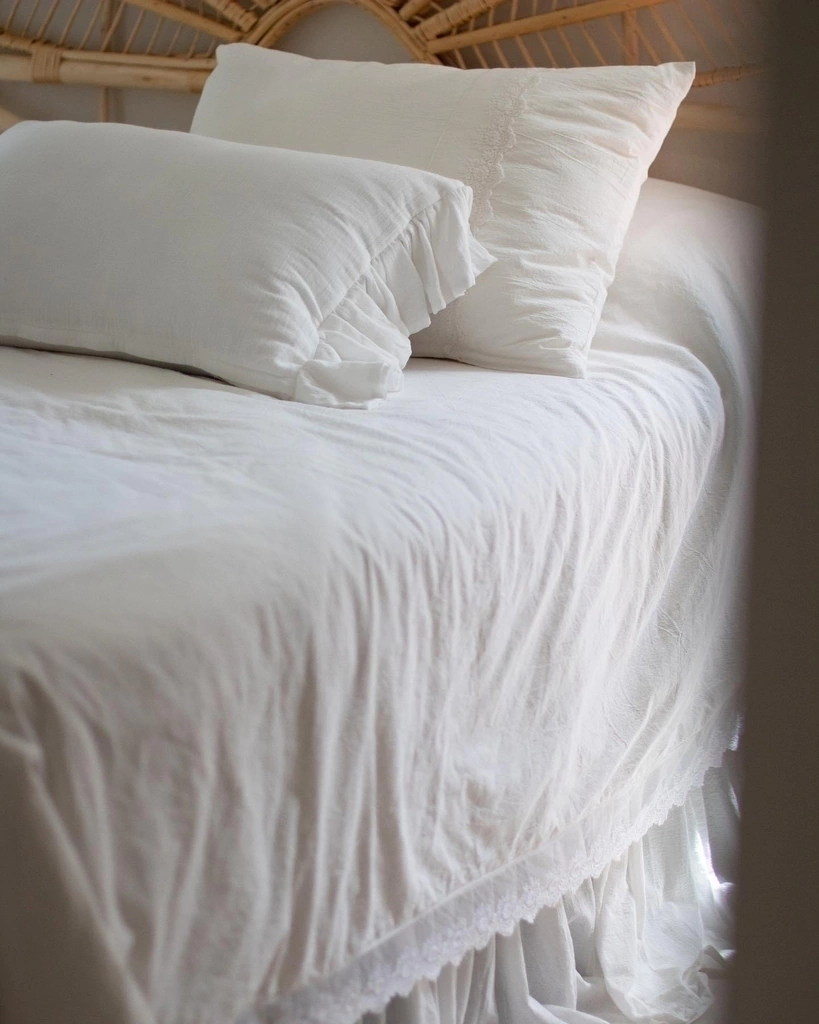 Hecho todo en gasa de algodón, super suave, con volados de doble tela en sus dos costados y cierre con solapa para taparlo